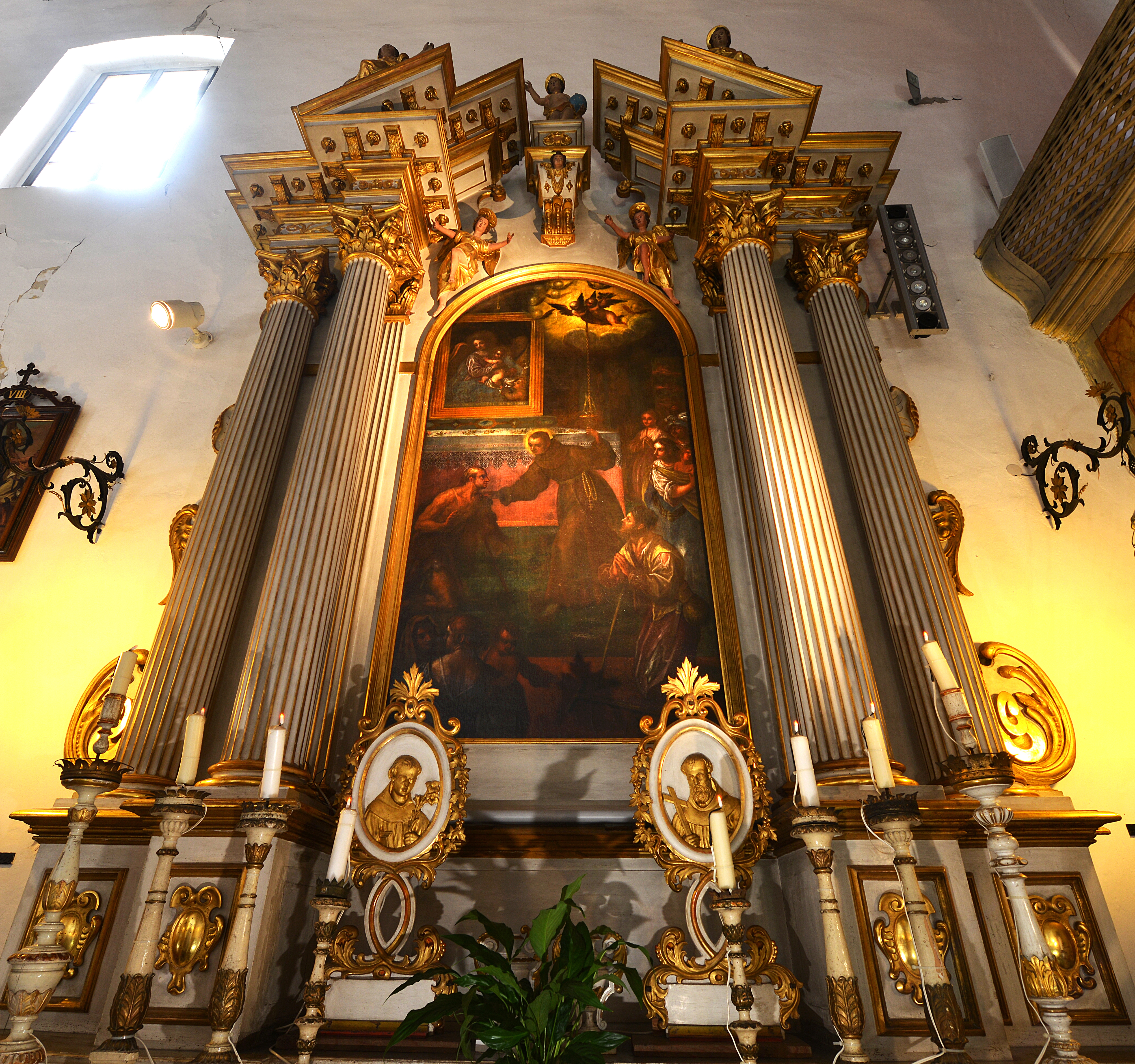 In addition to the main altar, the church has six side altars. Starting from the entrance, the first altar on the left is dedicated to Jesus’ name. Its original altarpiece is among the ones still retained inItaly. The altar in the side chapel is dedicated to St. Anthony of Padua. The last altar on the left is dedicated to Our Lady of Lourdes.