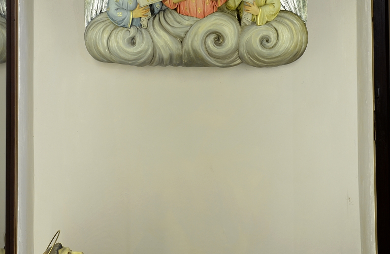 On the main altar the original retable is missing, a polyptych of Clima de Conegliano, Virgin Mary with Child and Saints, which is still in Italy. Among the saints is also St. Anne, the mother of Virgin Mary and the patron of the church. Her feast day, together with her husband Joachim, is celebrated on 26 June. On the wall to the left of the main altar, there is a painting of Virgin Mary among four female saints, holy helpers: St. Magdalene, St. Catherine of Alexandria, St. Apollonia, and St. Lucia.